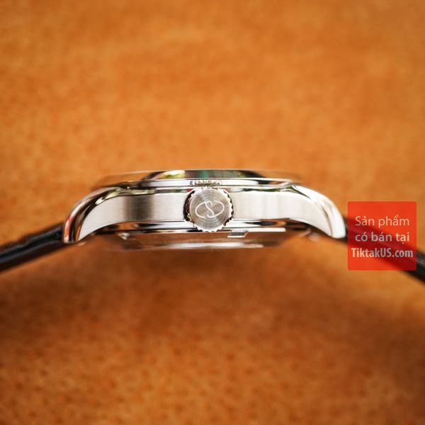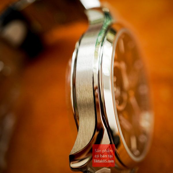 - Hòa quyện trong gam màu trắng bạc của mặt đồng hồ, đó là màu bạc của các con số và kim chỉ thời gian. Điểm nhấn chính trên mặt đồng hồ chính là ô lộ máy khoe trọn vẻ đẹp cơ khí của bộ máy sản xuát tại Nhật Bản. Các mốc thời gian được thể hiện bằng các cọc nhọn vuốt sắc như thanh bảo kiếm. Từng đường nét đều rất sắc bén và tinh tế. Với gam màu tối toát lên sự quyền quý, hiện đại và sang trọng của chủ nhân sở hữu chúng.