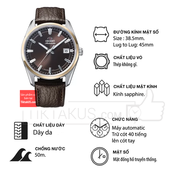 • Orient Contemporary có kích thước size mặt 38.5 mm phù hợp với các chàng trai có cổ tay vừa và to. Chất liệu mặt kính Sapphire, bền bỉ , chống trầy và khả năng chống va đập tốt.