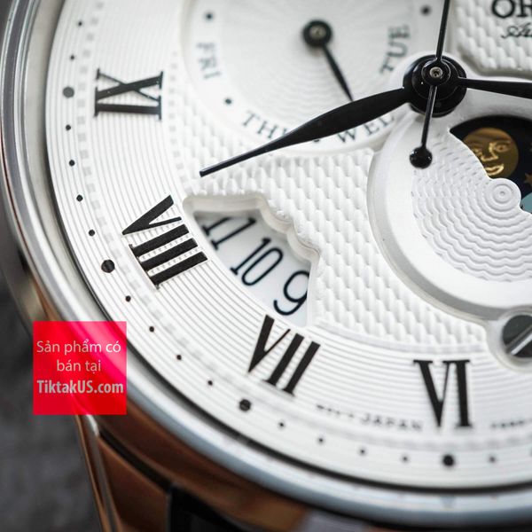 • Đồng hồ nam Orient Sun and Moon RA-AK0008S10B là một trong những mẫu đồng hồ kiểu dáng thời trang nổi bật của thương hiệu Orient đến từ Nhật Bản, sản phẩm này đã tạo nên tên tuổi của hãng Orient trên thị trường đồng hồ thời trang nam Automatic cao cấp.