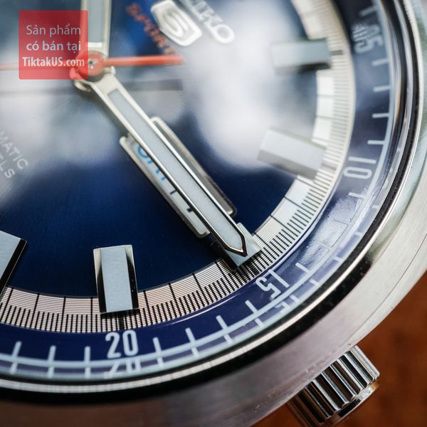 - Mặt đồng hồ của SRPB15 được sơn bằng phương pháp đổ màu Gradient, kỹ thật sơn này đã mang lại cho SRPB15 một sự hấp đẫn đặc biệt ngay khi bạn nhìn thấy nó, Màu xanh ánh bạc của mặt số kếp hợp với màu cam của kim giây và màu ánh bạc của các cọc giờ, từng chi tiết nhỏ đều được Seiko thiết kế để hòa hợp với nhau nhất
