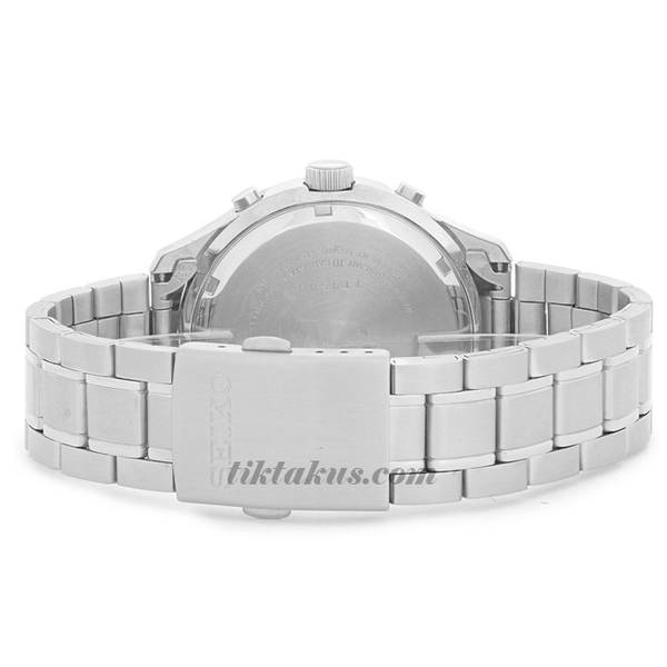 Seiko có độ chống nước 100m (330 feet) giúp bạn yên tâm sử dụng khi đi bơi, đi mưa mà không hề lo ngại đồng hồ ngấm nước. Dây đeo cũng được làm từ thép không gỉ tỉ mỉ. Móc gập chắc chắn, có in dập logo Seiko tinh tế.