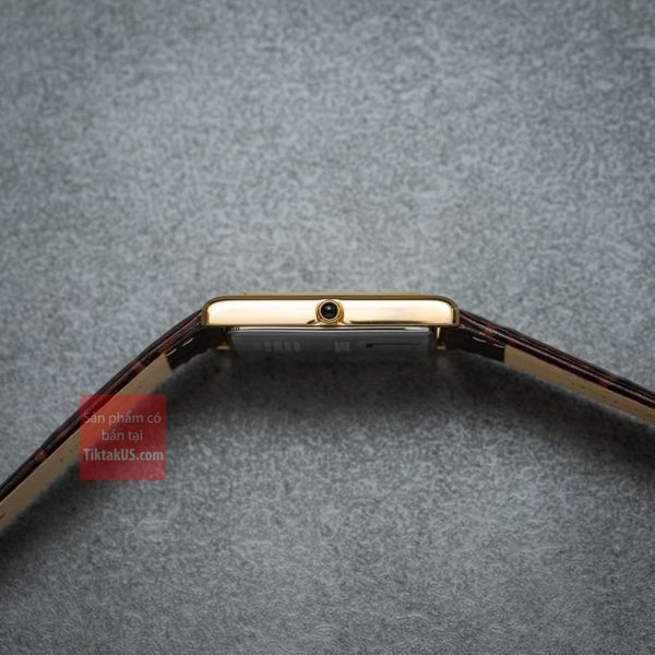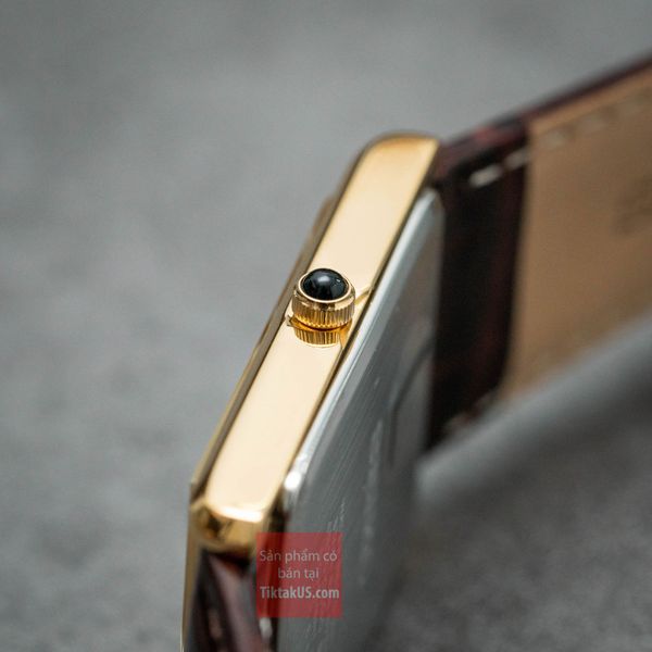 Size 28.5mm, khá gần size ''chuẩn Cartier'', thiết kế khối chữ nhật đơn giản nhẹ nhàng, em này có thể gọi là một chiếc Dress watch chuẩn mực
