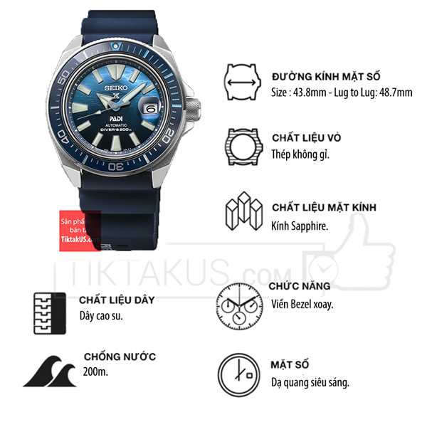 • Thuộc Bộ sưu tập Seiko Prospex kế thừa lịch sử hơn 55 năm từ khi chiếc Seiko 5 đầu tiên ra đời vào năm 1963 . Bộ sưu tập đồng hồ cơ Seiko Prospex này là những chiếc đồng hồ đeo tay nam bền bỉ với thiết kế cá tính, đậm chất thể thao. Một chiếc đồng hồ đeo tay với ngoại hình khỏe khoắn và nam tính, Seiko Prospex đã dần trở thành một chiếc đồng hồ đeo tay phù hợp cho người mới chơi.