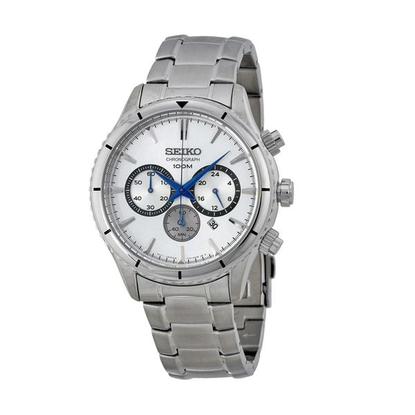 Đồng hồ nam Seiko SRW033 sang trọng, lịch lãm với dây kim loại sáng bóng và kim màu xanh da trời nổi bật.