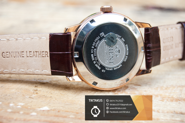 Đồng hồ ORIENT Classic Automatic FFD0J001W0 chính hãng với thiết kế mặt tròn, kẻ vạch thanh lịch và sang trọng. Viền đồnghồ, kim và vạch số được mạ màu vàng hồng đồng nhất kết hợp với mặt nâu trẻ trung và nổi bật.