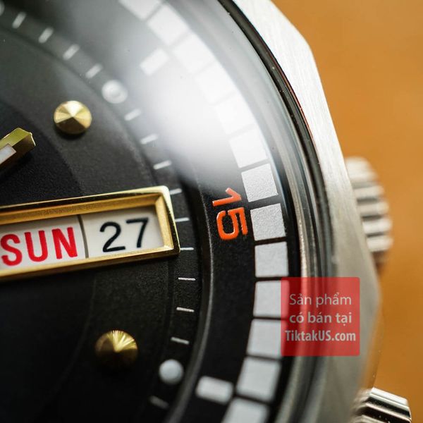 Thiết kế giữ theo nguyên bản, viền bezel của đồng hồ Orient SK 2019 có thể xoay đượng bằng cách xoay núm vặn bên hông của đồng hồ.