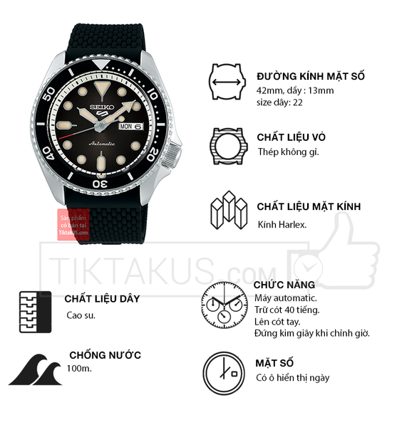 • Seiko 5 automatic SRPD73K2 có kích thước size mặt 42 mm phù hợp với các chàng trai có cổ tay vừa và nhỏ. Chất liệu mặt kính Harlex, bền bỉ , chống trầy tương đối tốt và khả năng chống va đập tốt.