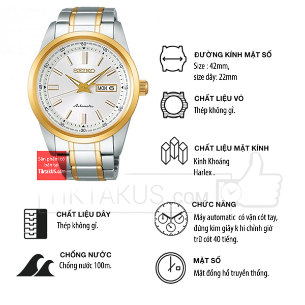 • Chiếc đồng hồ này còn được sở hữu bộ máy automatic 4R36 độc quyền của Seiko với những tính năng như lịch thứ - ngày giúp bạn kiểm soát tốt được thời gian. Đặc biệt bộ máy Seiko automat ic mới này còn có chức năng vặn lên cót tay và đừng kim giây khi chỉnh giờ ( hacking Stop) .