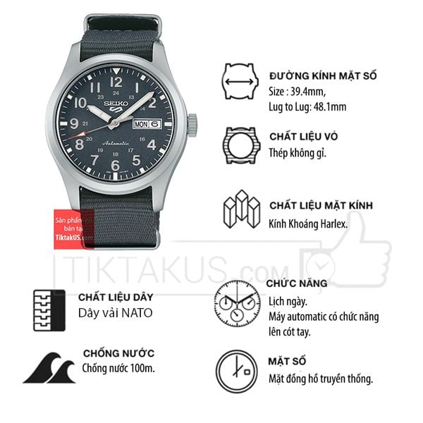Seiko 5 quân đội 2022 SRPG31K1 size 39.5mm 4R36 automatic.