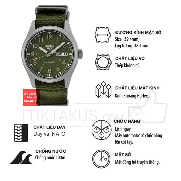 Seiko 5 quân đội 2022 SRPG33K1 size 39.5mm 4R36 automatic.